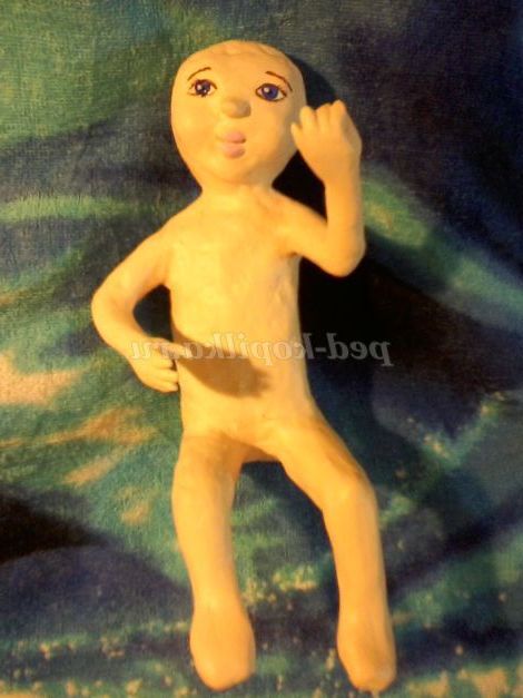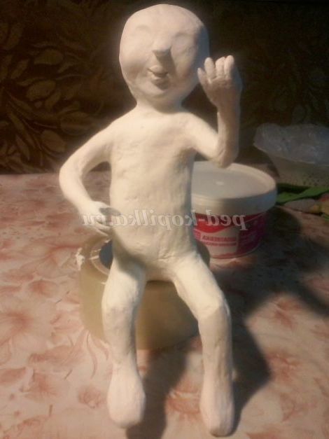 12: Коли висохне наша фігурка нанести на тулубі шпаклівку, щоб тіло було гладеньке, без вад. Шпаклівку наносити пальцем, розгладжуючи всі стики, а зверху ще пройтися мокрим пензликом. Не бійтеся, це не так складно, як здається на перший погляд.