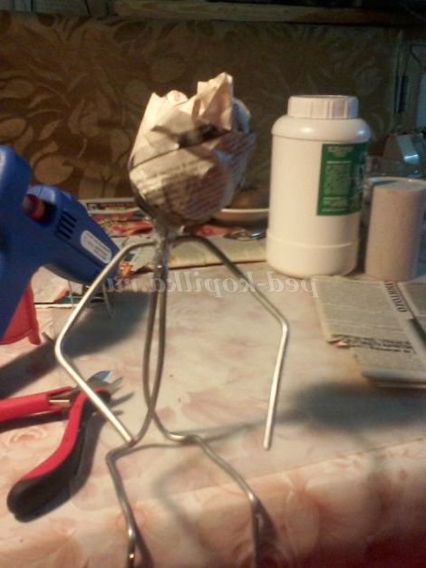 4: Обклеїти каркас смужками паперу з клеєм ПВА.