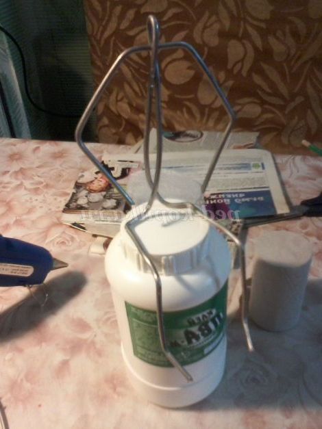 2: З дроту з допомогою кусачок і клейового пістолета зробити каркас фігури людини. Відразу надаємо каркаса задуману позу.