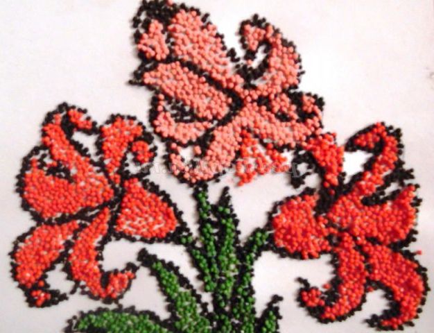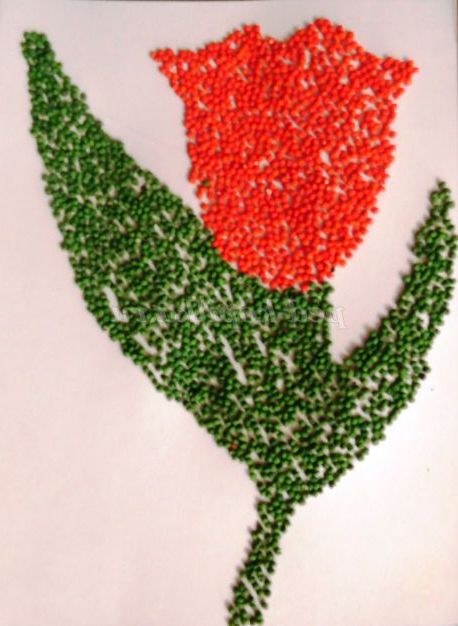 Я хочу надати Вашій увазі один з варіантів малювання крупою - «подарунок коханій матусі»,виконаний пшоном. Найприємнішим подарунком для наших мам найчастіше бувають квіти. Але живі квіти у діток не завжди є можливість подарувати. Тому їх цілком можна намалювати. Повірте, квіточка, «виготовлений» своїми руками, принесе не менше радості, ніж справжній.