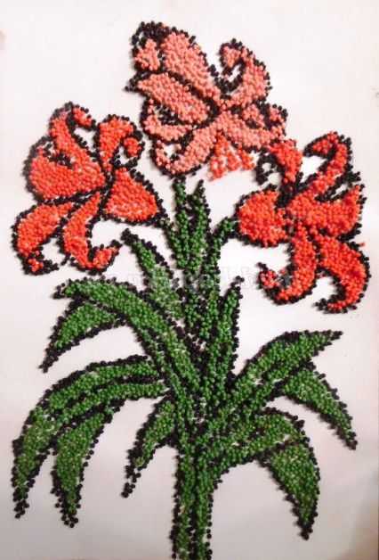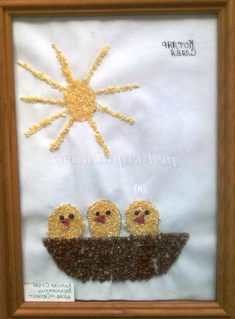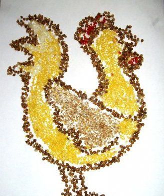Практично всі дітки люблять возитися з крупою: пересипати її, перебирати руками, шукати в ній іграшки.. Ми в свій час просто пальчиком малювали розсипаної по крупі, що теж було дуже захоплюючим заняттям. Але, виявляється, крупи можна створювати справжні витвори мистецтва. У кожній крупи свій колір, калібр, форма крупинок. Поверхню малюнка з цього природного матеріалу виходить рельєфною, текстуру та нетрадиційної..