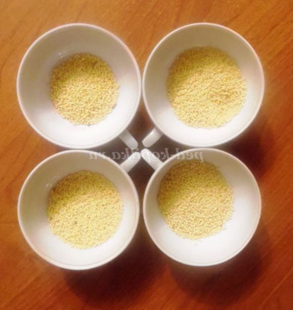 Отже, приступимо до фарбування. Для зручності роботи я помістила пшоно в різні ємності( чашечки).