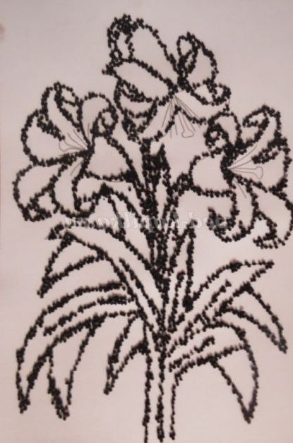 Акуратно перевертаємо малюнок вертикально і стряхиваем неприлипшие до клею залишки крупи. Ми отримали чорний контур малюнка.