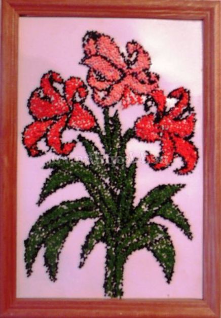 Подібним чином «зафарбовуємо» пелюстка рожевим пшоном. Все, квіточки готові.