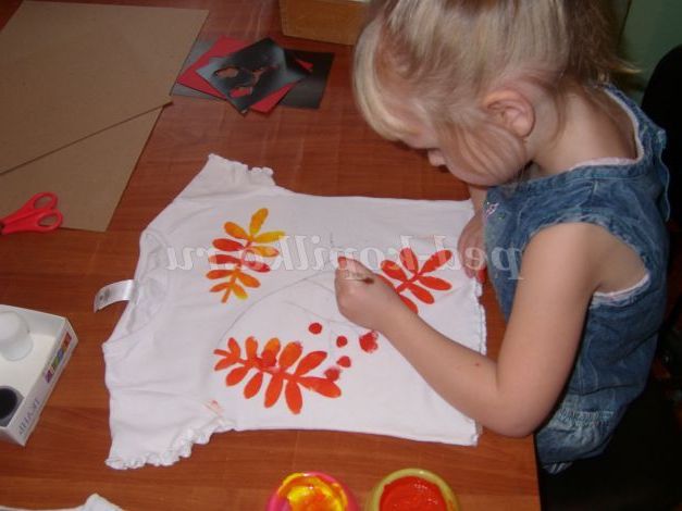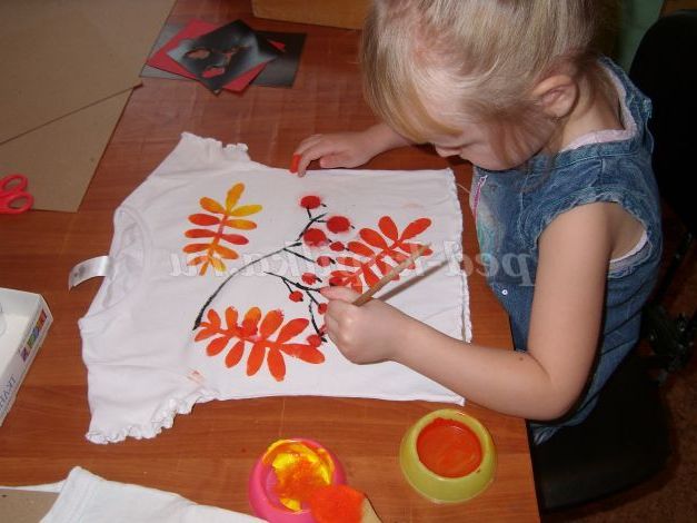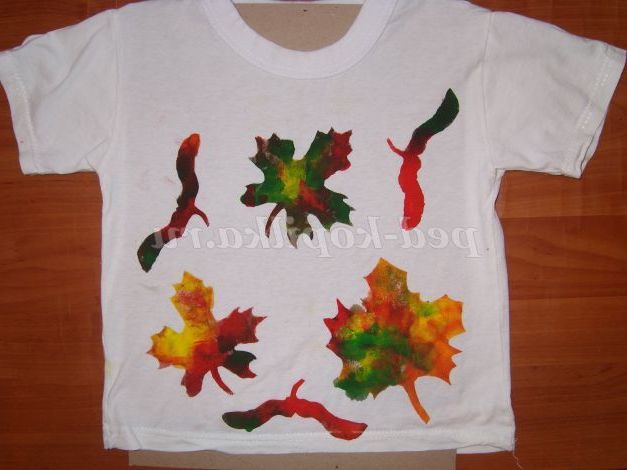 Майстер-клас як розфарбувати звичайні однотонні футболки в яскраві кольори осені, для дітей 5-7 років.