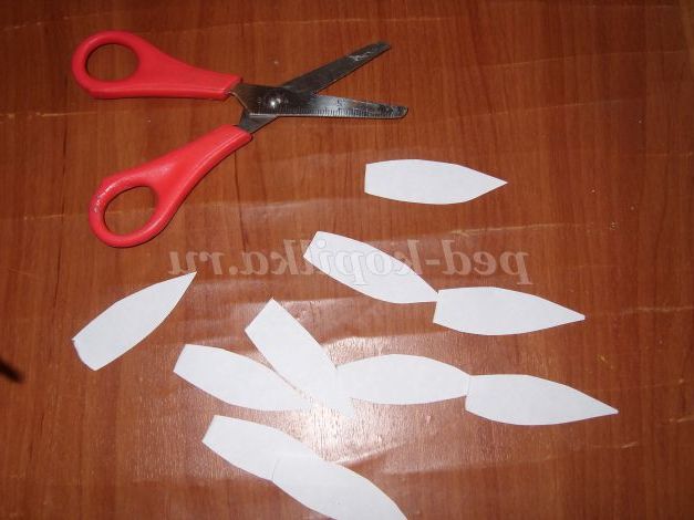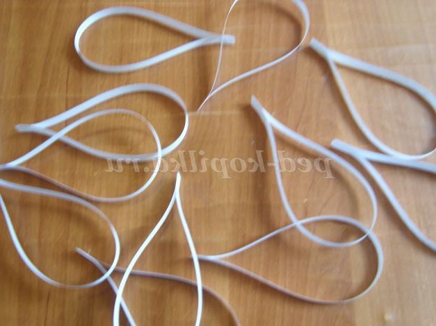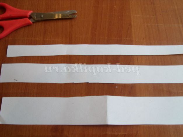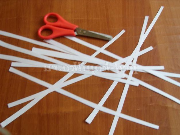 10. З аркуша паперу нарізаємо тонкі довгі смужки шириною близько 5 мм Звертаємо в петельки.