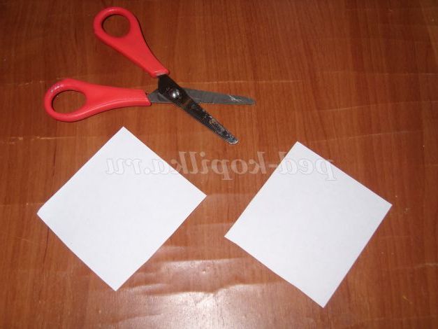4. З іншого шматочки паперу, складаючи його по полам, вирізаємо крильця. Приклеюємо.