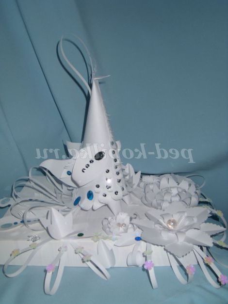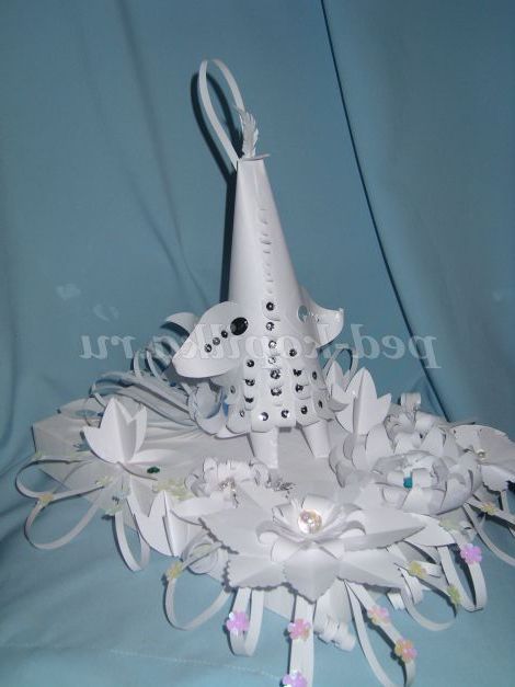 16. Приклеюємо птицю до основи. Декоруємо паперовими квітами і паєтками.