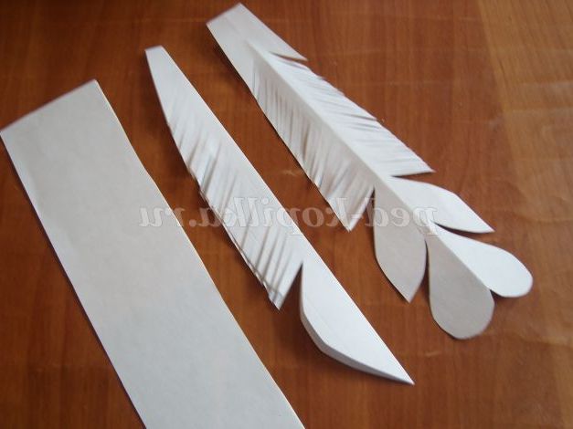 5. З складеної в кілька разів смужки паперу висотою 2-3 см, вирізаємо пір'я.