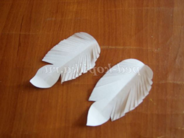 8. Два такі ж пір'їнки більшого розміру приклеюємо на крила.