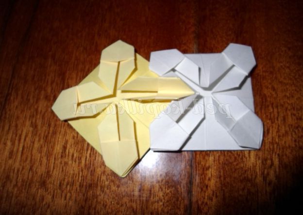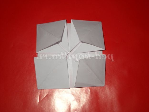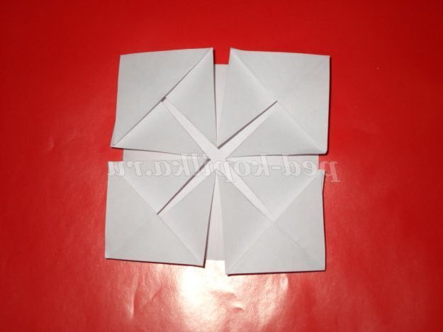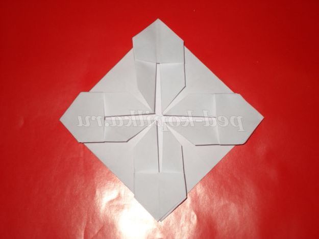 7. У нас вийшло чотири ромба. Тепер у кожного ромба відгинаємо куточки вгору.