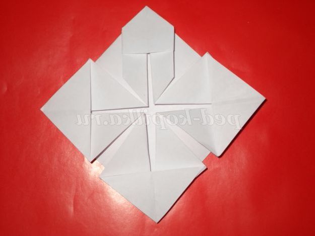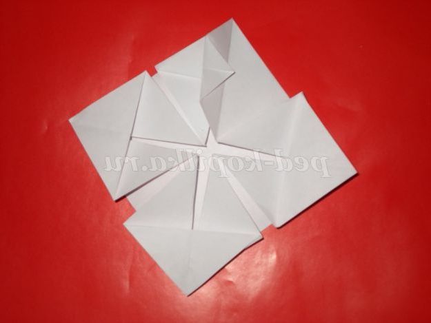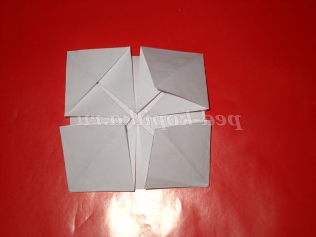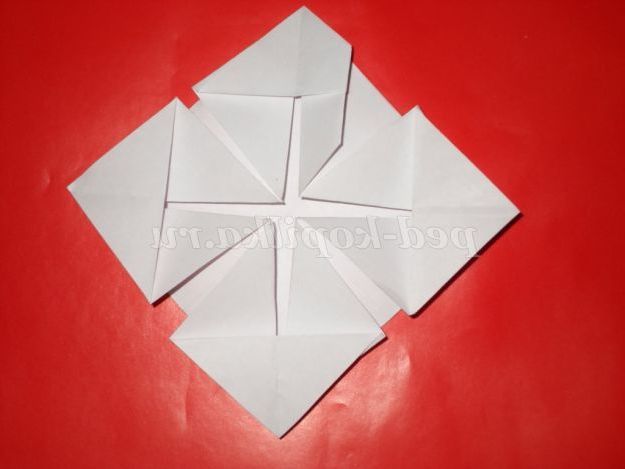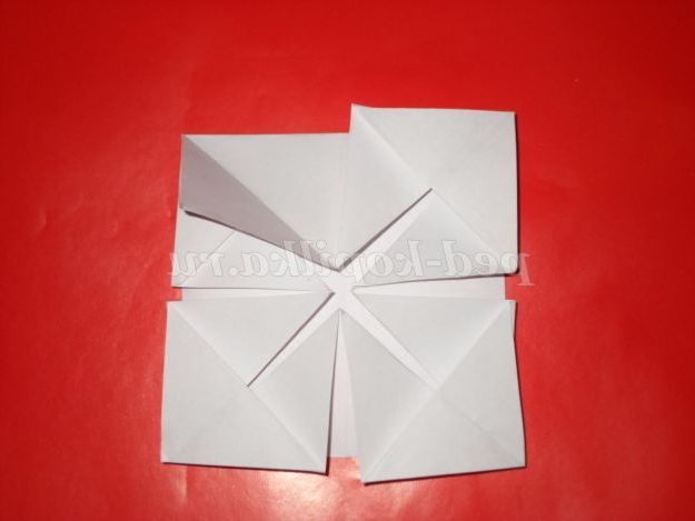 6. Перегнемо кут верх. Розправимо його. І так робимо всі чотири кута.