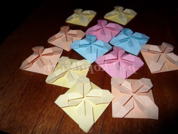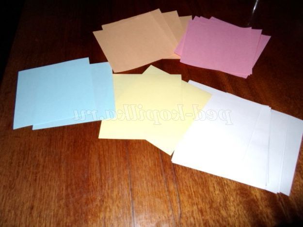 - Квадратні листочки розміром 8,5 див. (їх кількість залежить від бажаного розміру готової моделі, в даному випадку використовували 21 модуль різних кольорів.