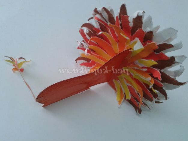 7. Кінець хвоста оформляємо пензликом з тих же смуг кольорового паперу.