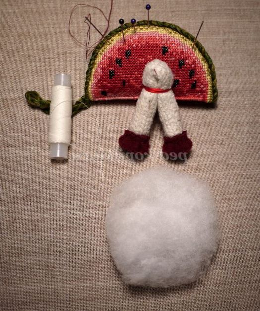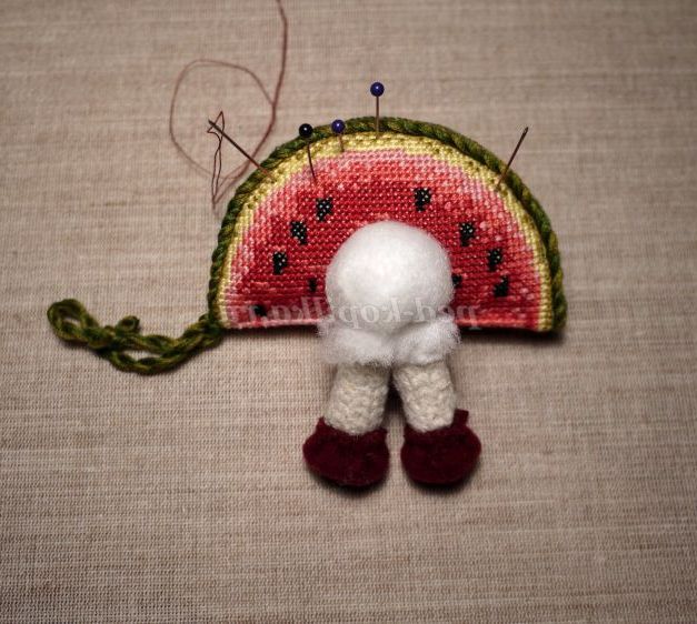 6. Обмотуємо місце голови синтепоном, оформляємо кулька (великий).