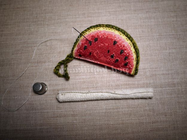 10. Смужку складаємо навпіл, на виворітній стороні зшиваємо швом «назад голкою».