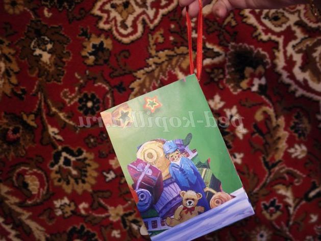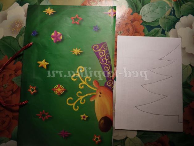 1. Для виготовлення Різдвяної листівки необхідний виробний або кольоровий картон для лицьової сторони листівки. Ми взяли для цього подарунковий пакет, який вже відслужив своє.
