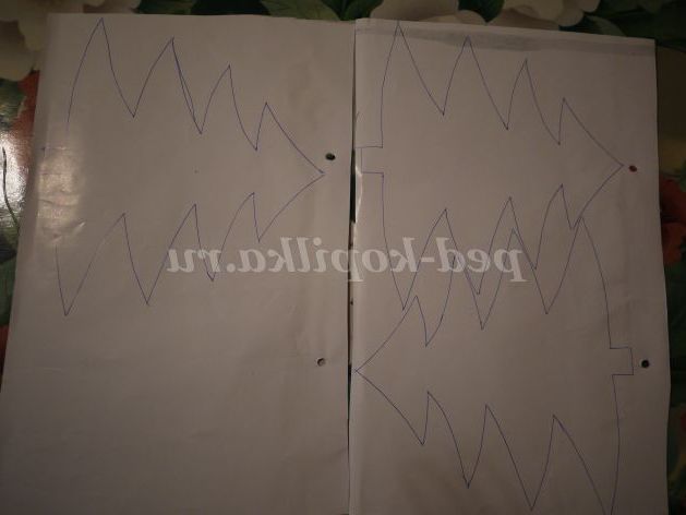 10. Тепер склеюємо ось так, як на фото, дві деталі, а потім третю деталь нашої ялинки.