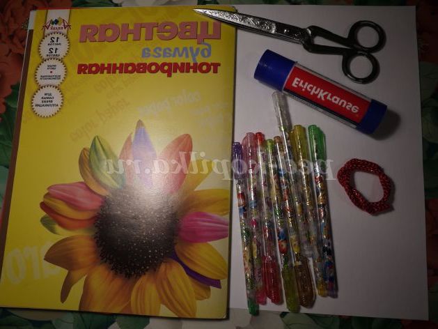 Обладнання: виробний або кольоровий картон, кольоровий папір, кольоровий картон, клей, ножиці, лінійка, олівець, викидний матеріал (не потрібні в побуті подарункові пакети із зимовою тематикою, кольорові стрічки), заздалегідь заготовлені зображення сніговиків (аплікація, колаж).
