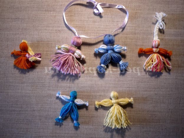 ось таких кумедних маленьких лялечок можна зробити у вигляді подарунка своїм близьким і друзям, для прикраси одягу, сумок, поясів, як браслетик на руку, а також для гри дітям.