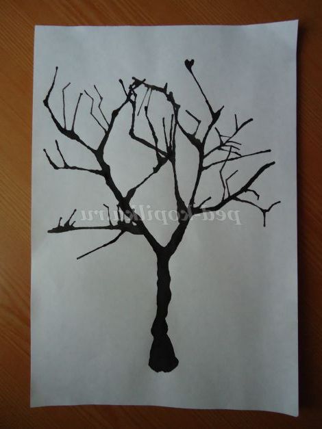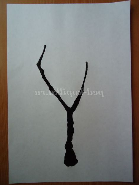 3. Трохи похитуємо лист з боку в бік - клякса розпливається по ширині аркуша, щоб надалі стовбур дерева вийшов не дуже тонким.