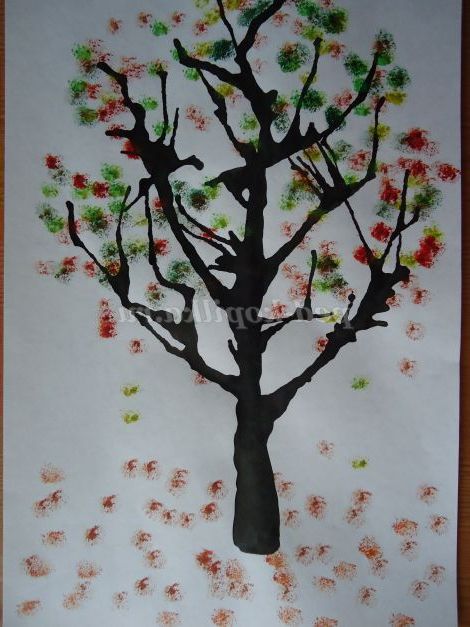 9. Не промиваючи кисть (кисть повинна залишатися сухою), капаємо воду в жовту фарбу, і робота виконується аналогічно. Листя виходять різнокольорові.