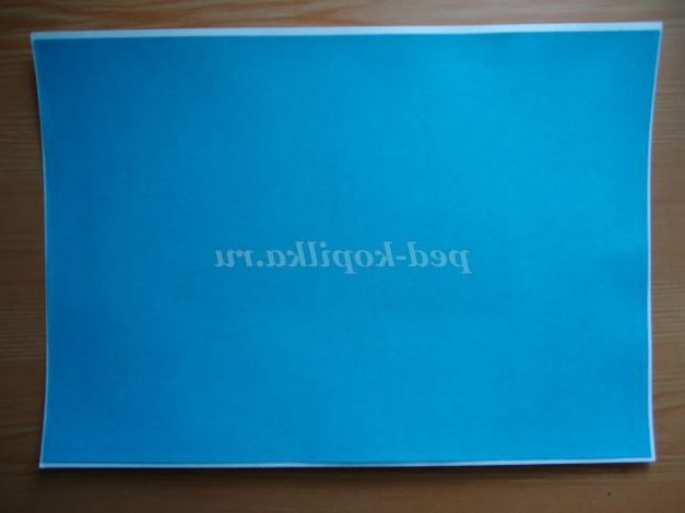 14.Приклеиваем блакитний лист на білий так, щоб вгорі залишилося не проклеенным місце для петлі.