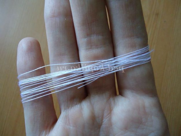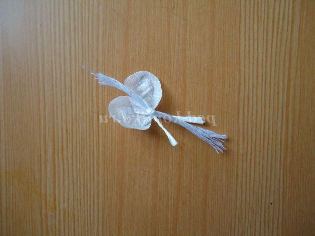 6.Разрезаем на дві половини накручені нитки і зав'язуємо вузлом посередині - це будуть тичинки.