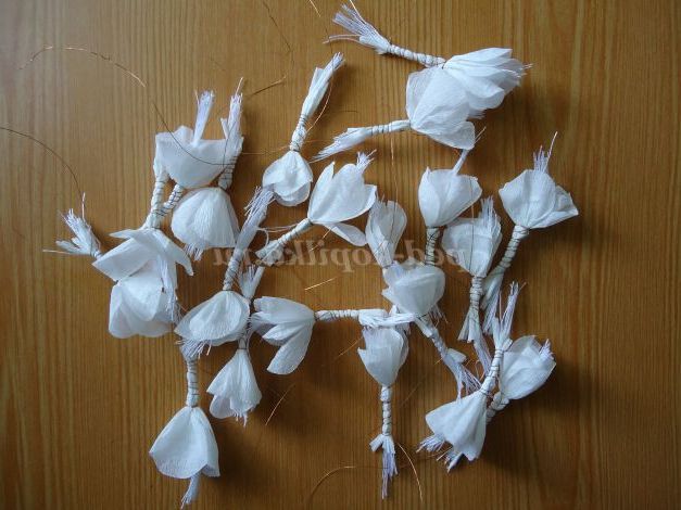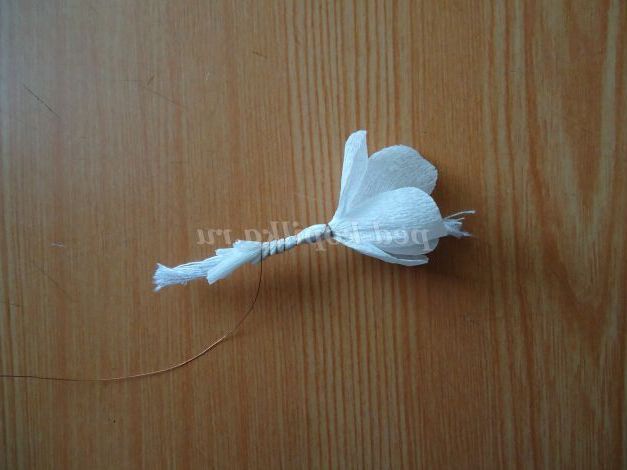 9.В кожній квітці по п'ять пелюсток. Скручуємо пелюстки дротиком.