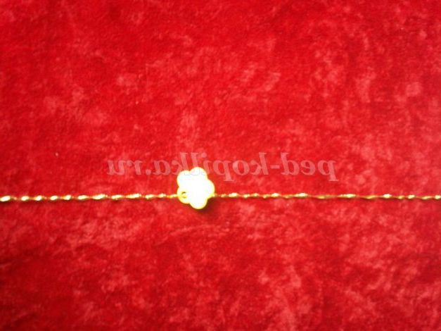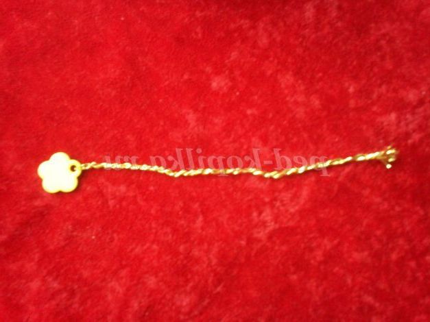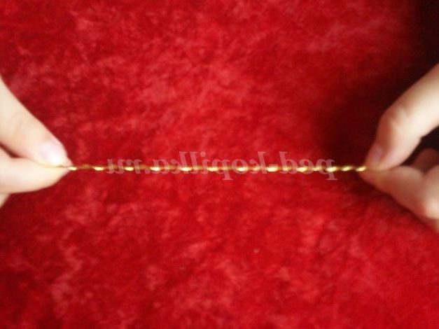 2. Беремо 30 см золотої нитки, скручуємо нитка, надягаємо квіточку і зав'язуємо вузлик.