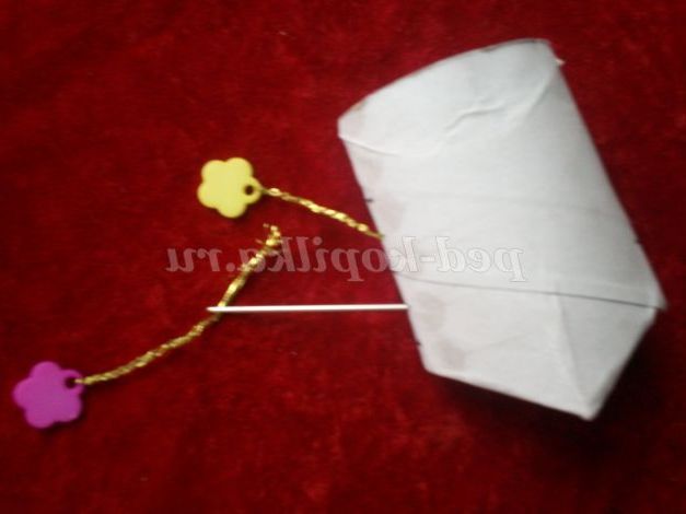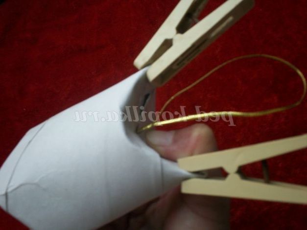 4. Протягуємо нитку всередину. Місце з'єднання нитки та рулону промазуємо клеєм і шматочком паперу.