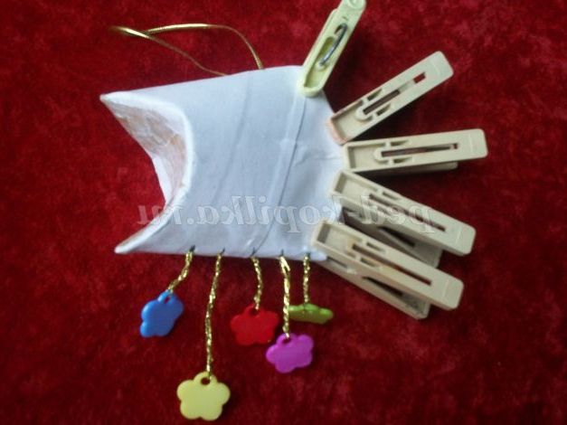 3. Ялинку і помпон зміцнюємо додаткової папером і склеюємо клеєм, затискаємо защібкою.