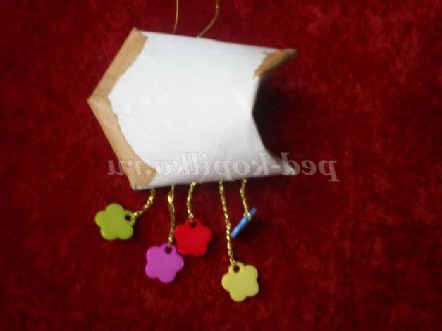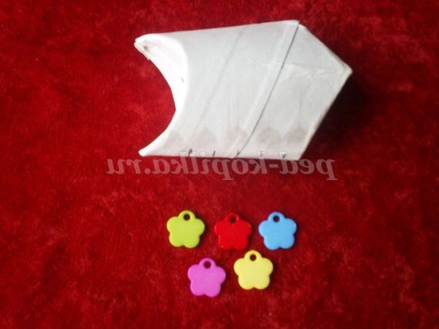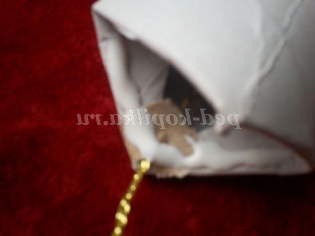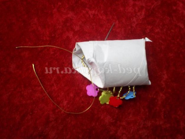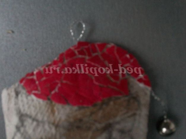 3. Робимо з 5 см срібної нитки петельку і приклеюємо на клей ПВА з допомогою шматочки паперу. Склеюємо.