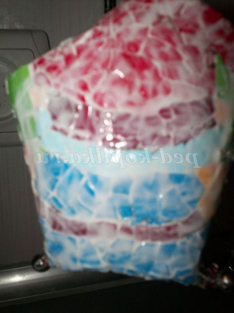 8. Так поступово обклеюємо всю заготівлю, відриваючи руками зайву частину серветки. Промазуємо всю заготівлю розчином і даємо просохнути.