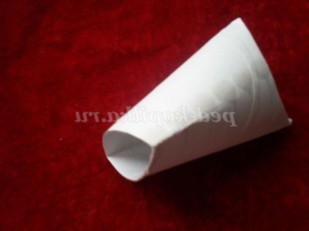 7. Коли заготовка висохне досить пригнути куточок рулону, як самі по собі виходять милі вушка совят. Промазуємо одну сторону розчином клею з водою (70% клею - 30% води). Прикладаємо білу серветку і легенько пригладжуємо.