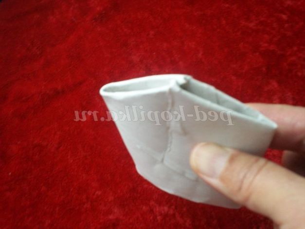 1. Беремо заготовку, зрізаємо один край і загинаємо краю для ніжок.