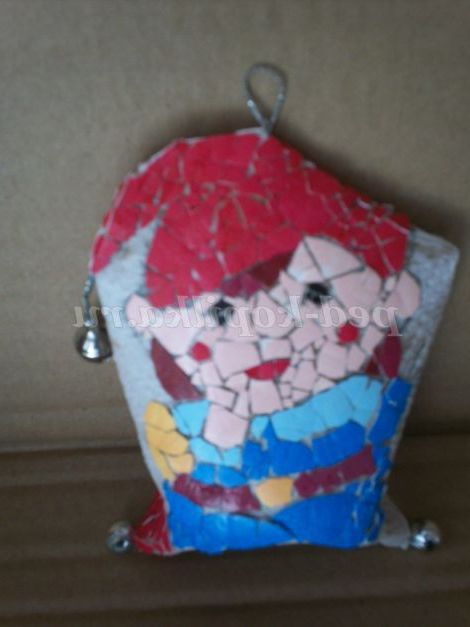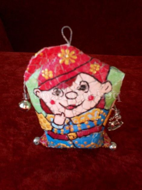 Наш гномик в цій іграшці декорований яєчною шкарлупою, вітає всіх з Новим роком, бажає щастя і дарує символ року - конячку.