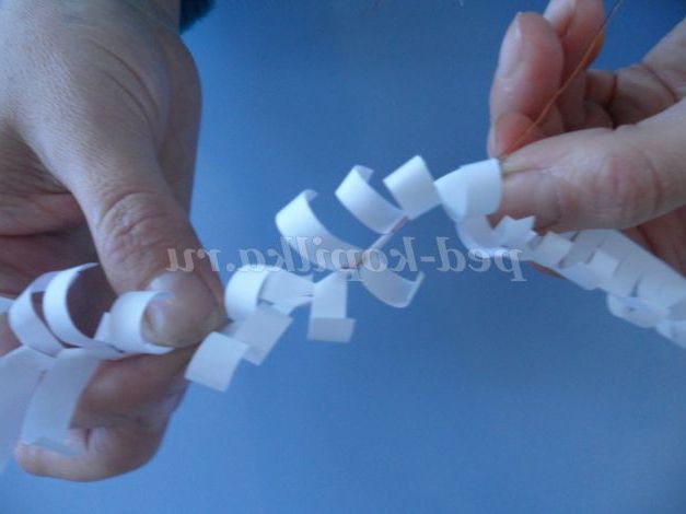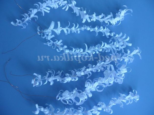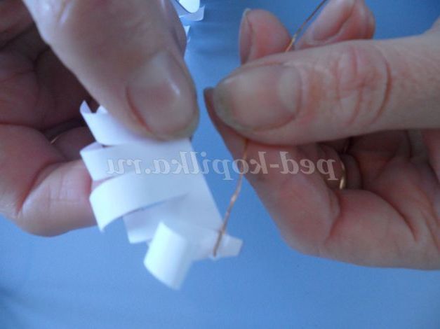 Тепер проколюємо дротиком край заготовки, загинаем дротик і починаємо накручувати по всій довжині, робимо снігові гілочки різного розміру.