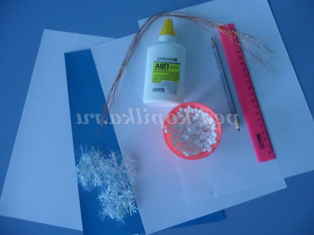 - блакитний аркуш картону (можна синій або фіолетовий).