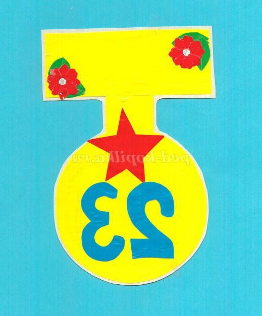 6. За шаблоном вирізаємо зірку і цифри ( 2,3). Наклеюємо ці деталі на медаль.