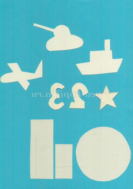 3. За шаблонами вирізаємо літак, корабель і танк, адже кордони нашої Батьківщини охороняють на землі, в повітрі і на воді!