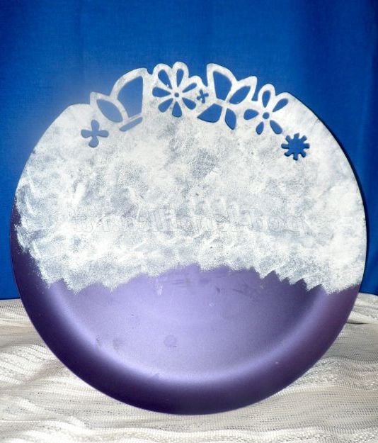 2. Спонжіком білу фарбу наносимо на поверхню тарілки «чпоком», щоб отримати ажурну поверхню.