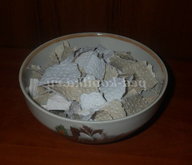 Папір рвемо на невеликі шматочки, складаємо в глибокий посуд і заливаємо гарячою водою на 2-3 години.