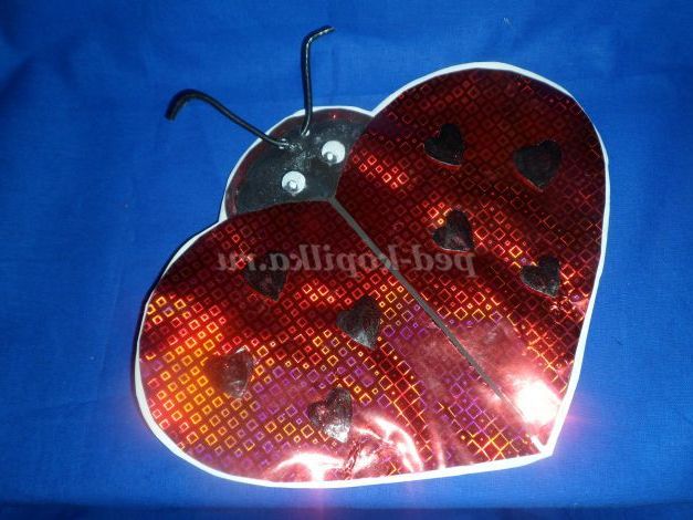 10. На вусики можна намотати чорної пряжі і закріпити клеєм. "Божа корівка" - готова.