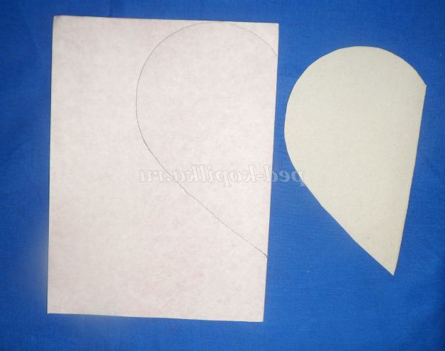 1. Лист червоного картону скласти навпіл. За шаблоном обвести шаблон половинки сердечка, приклавши його до лінії згину.