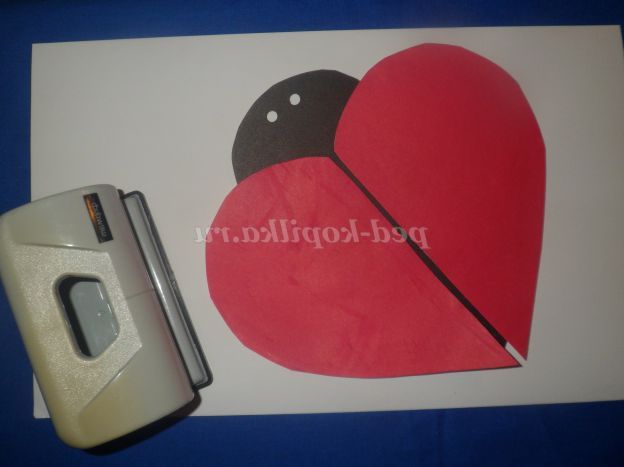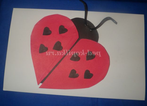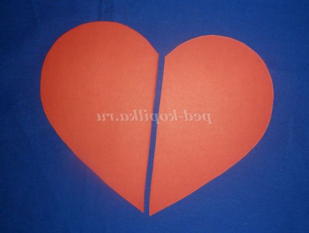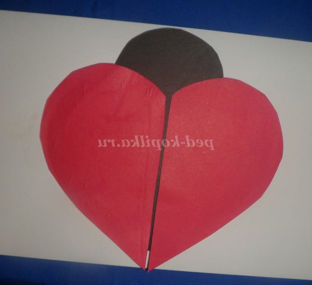 2. Розрізати сердечко на дві частини. Це - крила Божої корівки
