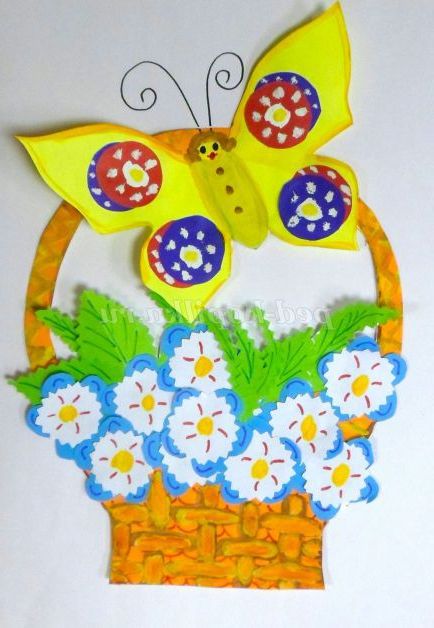 7. Наклеїти метелика на ручку кошика. Включаємо фантазію і прикрашаємо метелика