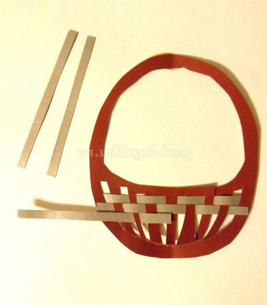 Щоб виготовити плетений кошик, треба вирізувати поздовжніх 5-6 смужок, ширина яких дорівнює поперечних смужок кошики. Кожну подовжню смужку протягуємо через смужки кошики