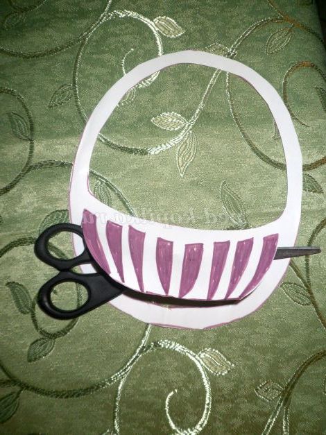 2. Щоб отримати ажурну кошик, необхідно вирізати "зафарбовані прути". Цю роботу можна виконати різаком, але для початкової школи пропоную акуратно зробити надріз ножицями денця кошика і вирізати грати.