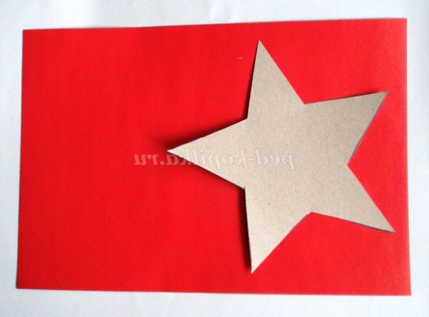 7. На картоні червоного кольору обводимо шаблон зірки і вирізаємо її